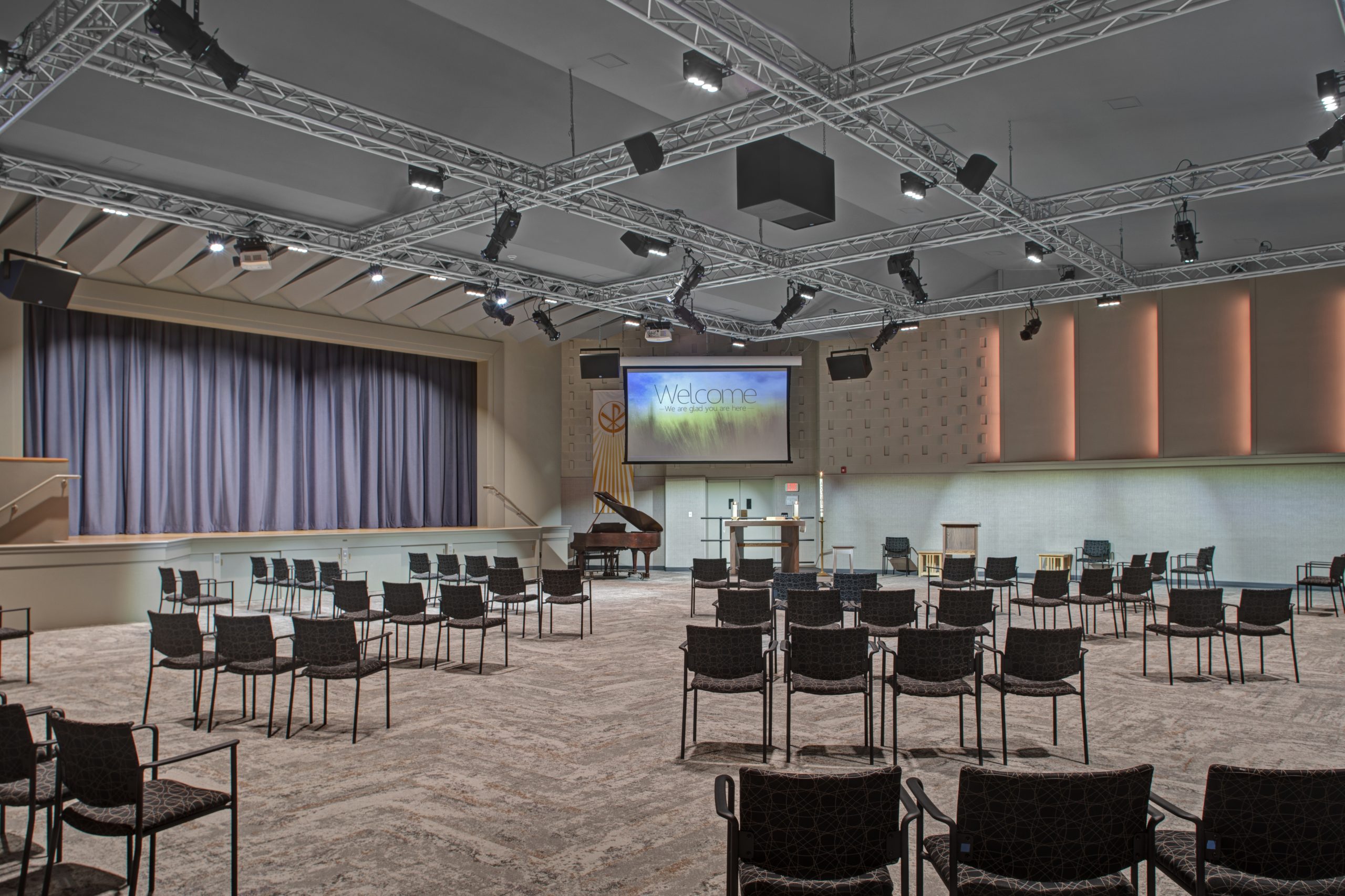 Renovation of 1966 church auditorium into an updated flexible, contemporary worship and multi-use gathering space. The modifications of the 5,000+ SF space created a fully accessible space, including a new lift for access to the existing stage. The Design Team worked closely with the A/V consultant to design new lighting, sound and visual systems to maximize use of the space. SAAarchitects provided full interior design services.